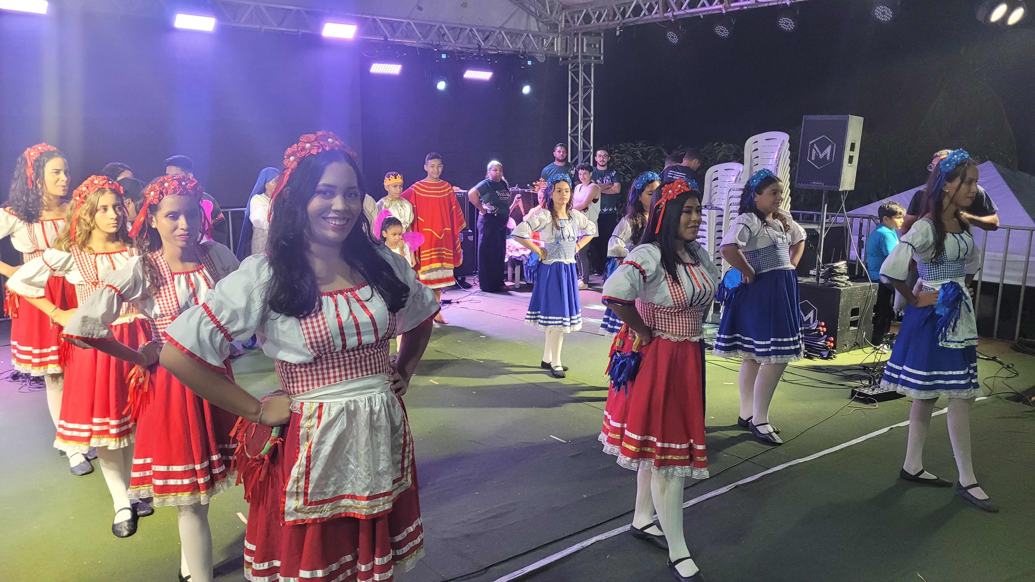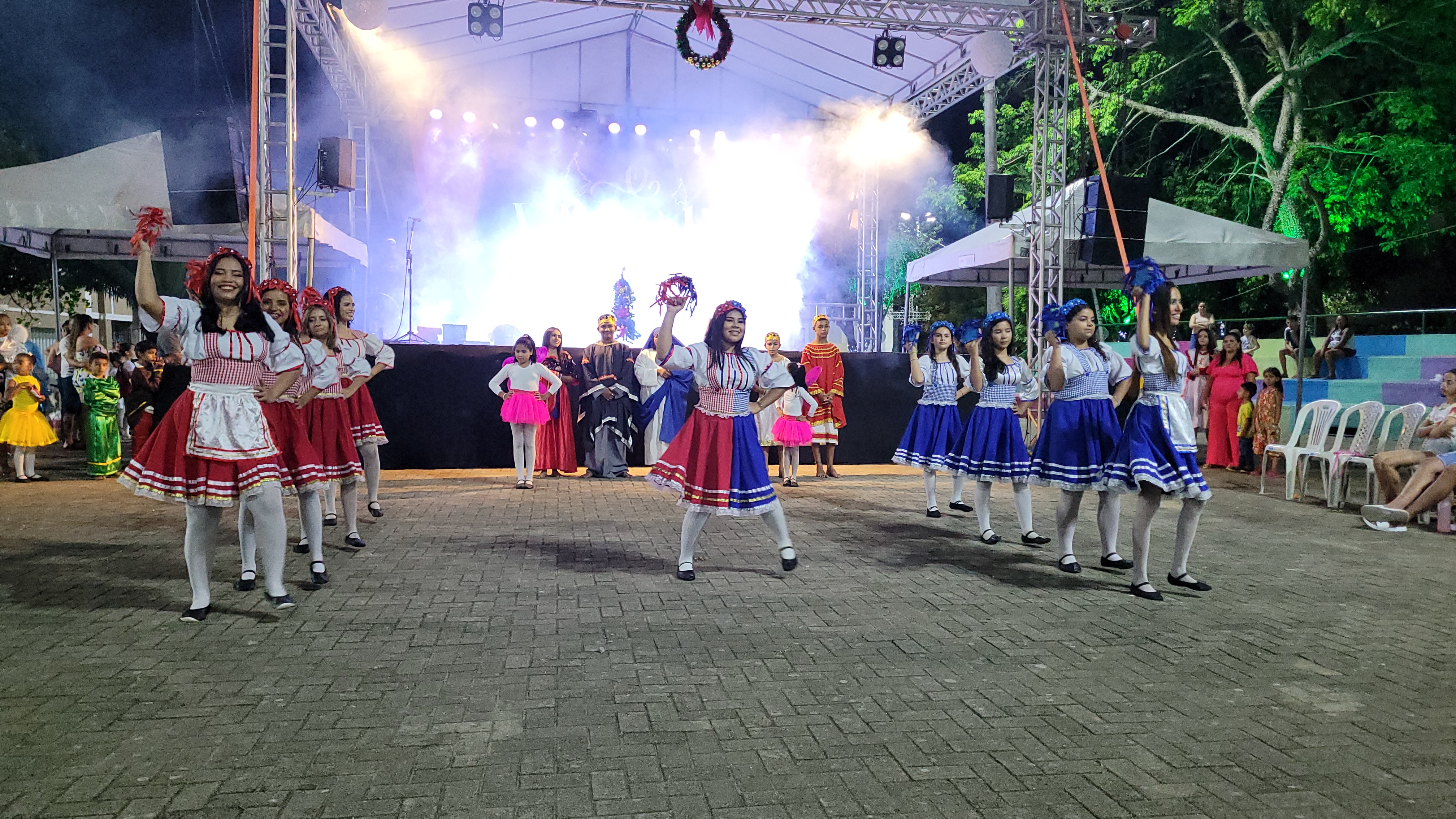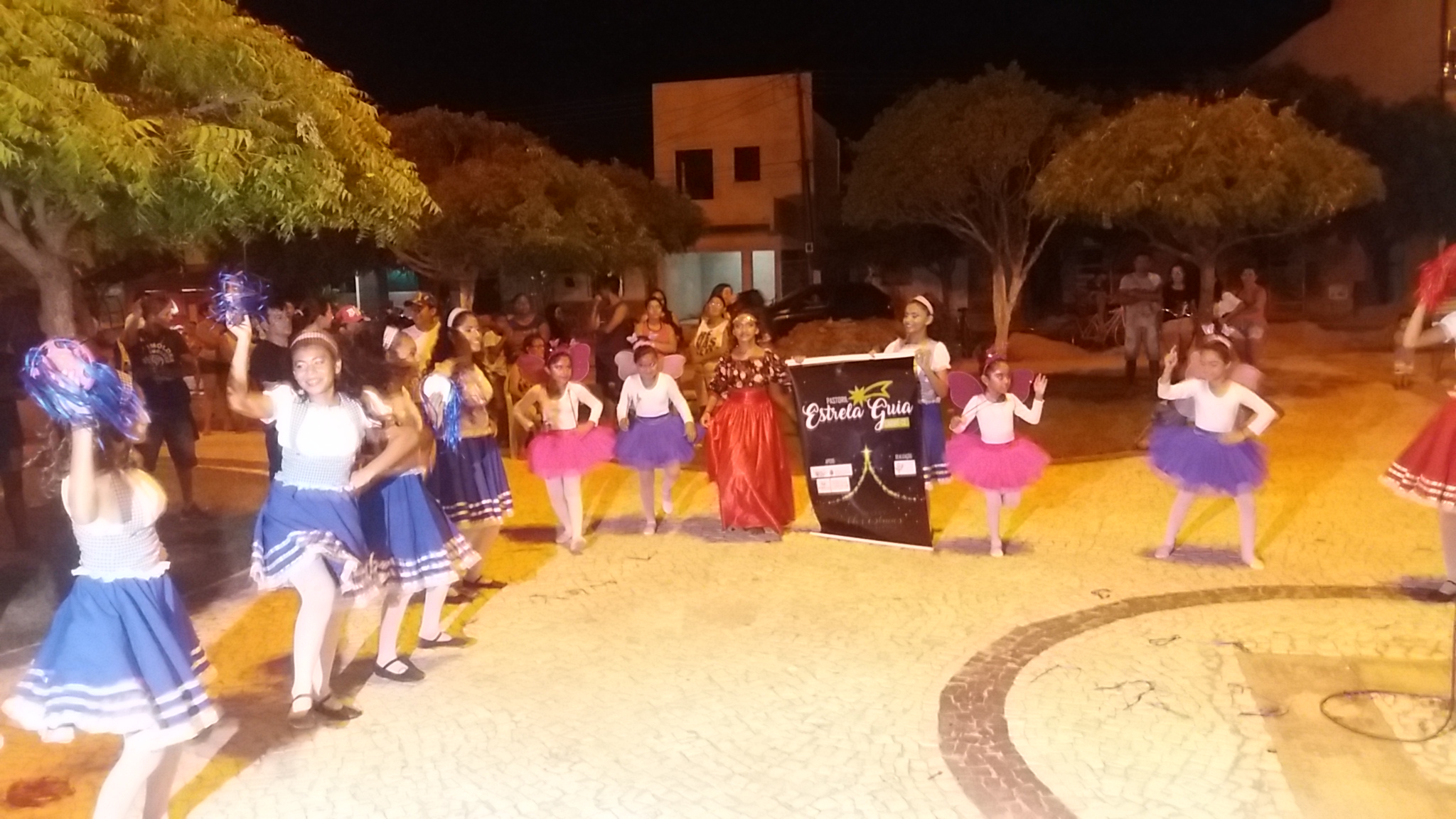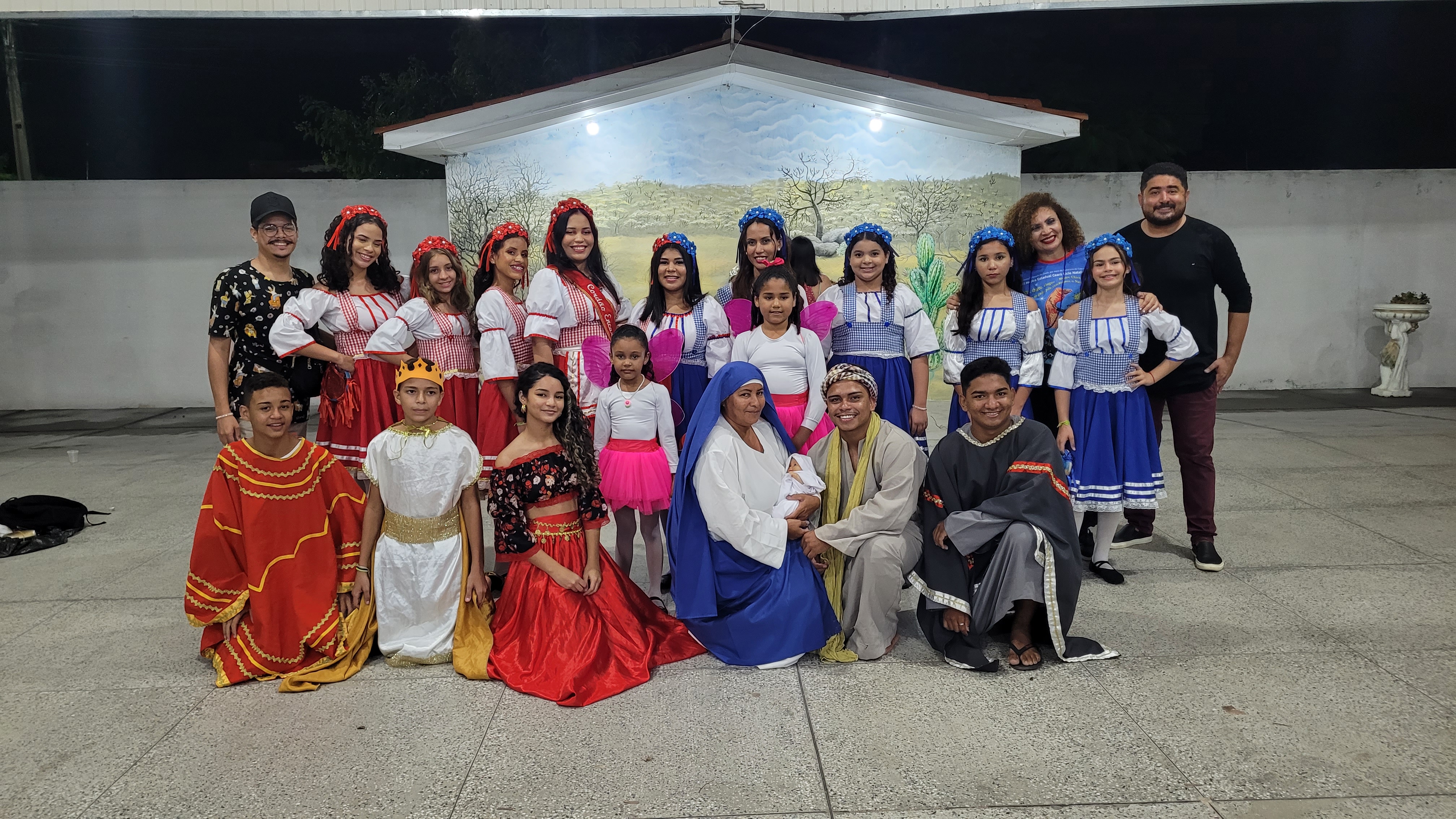 Aproximadamente 25 pessoas formam o nosso pastoril, entre dançarinas, atores e produção.