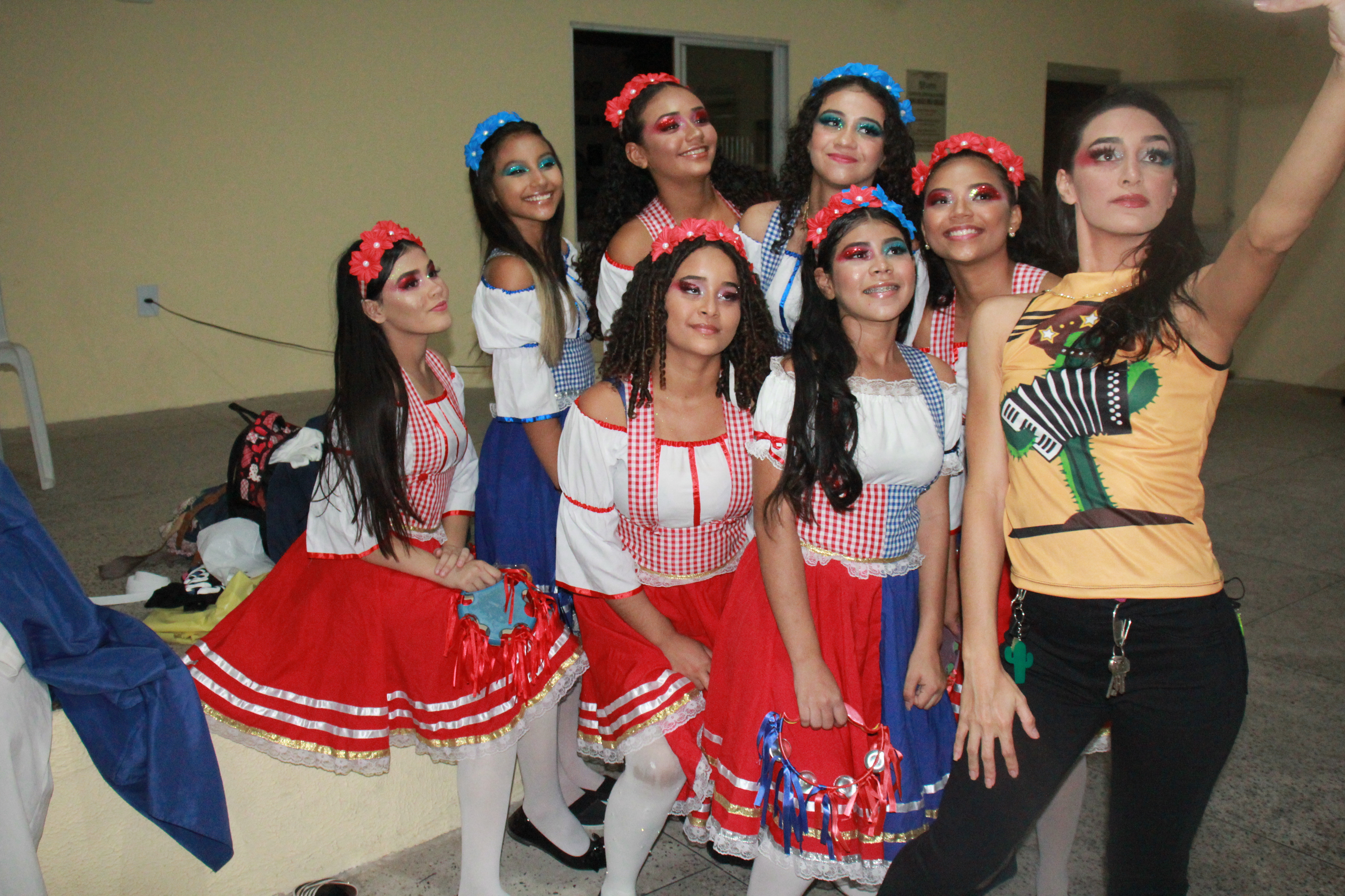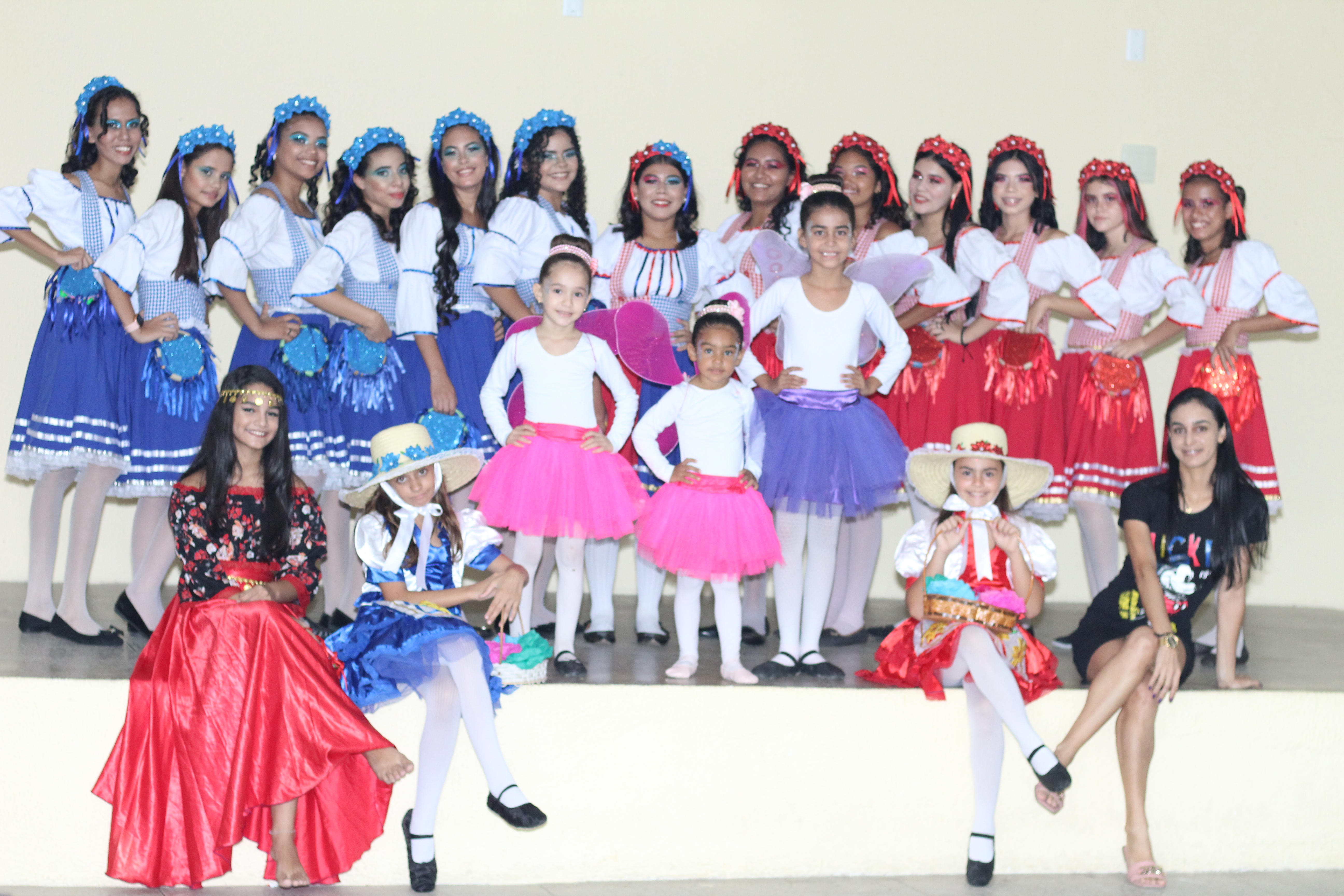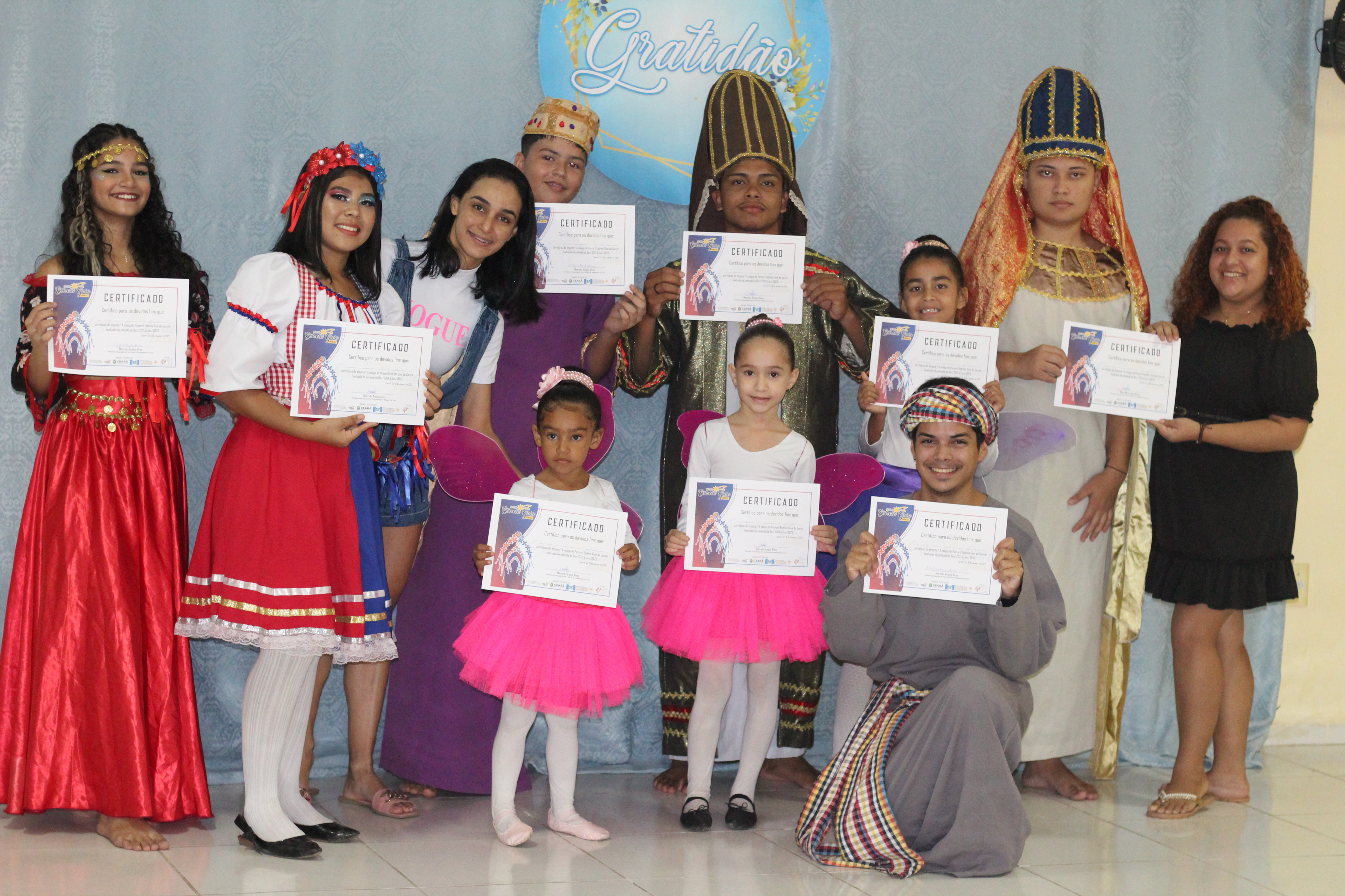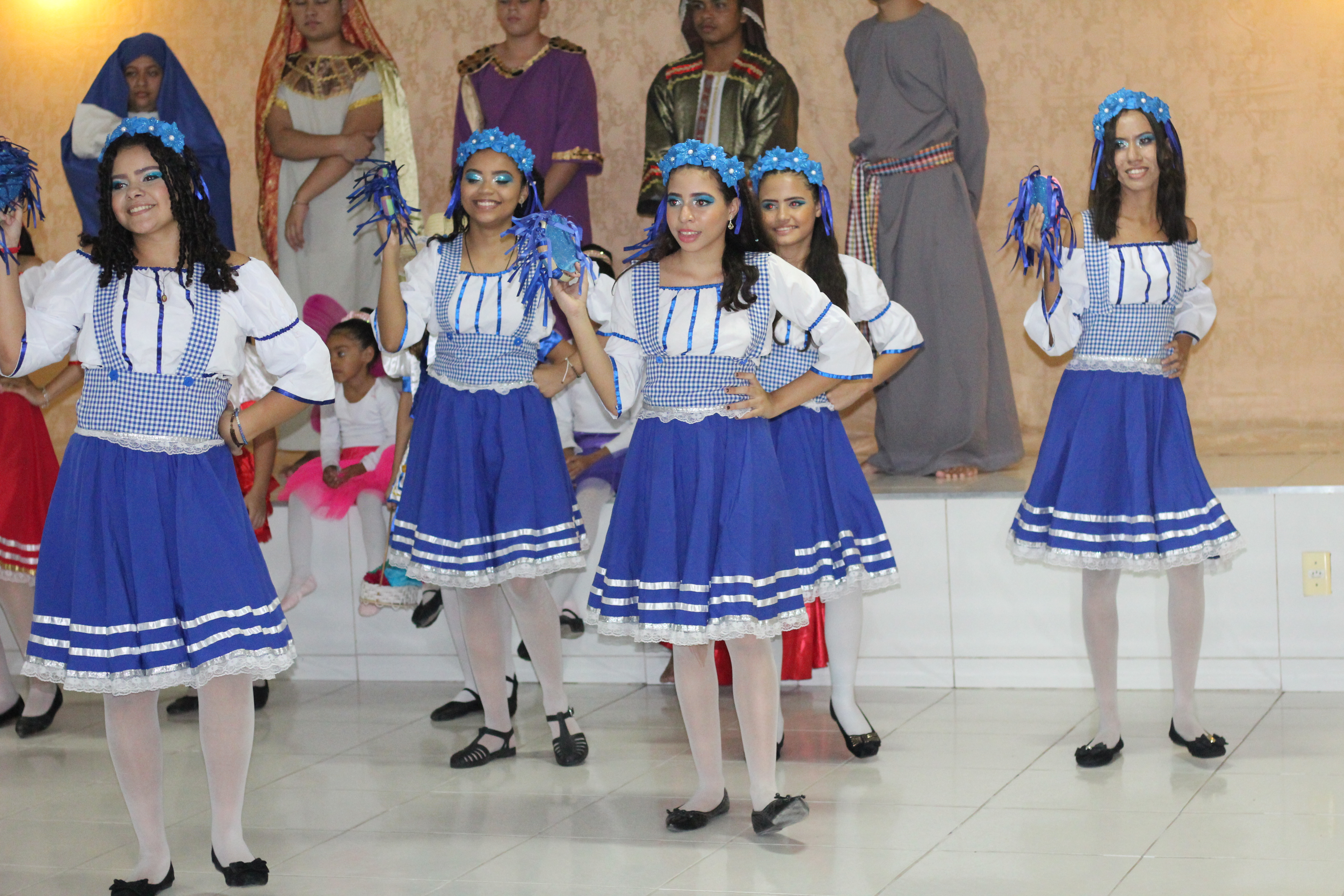 Aproximadamente 25 pessoas formam o nosso pastoril, entre dançarinas, atores e produção.