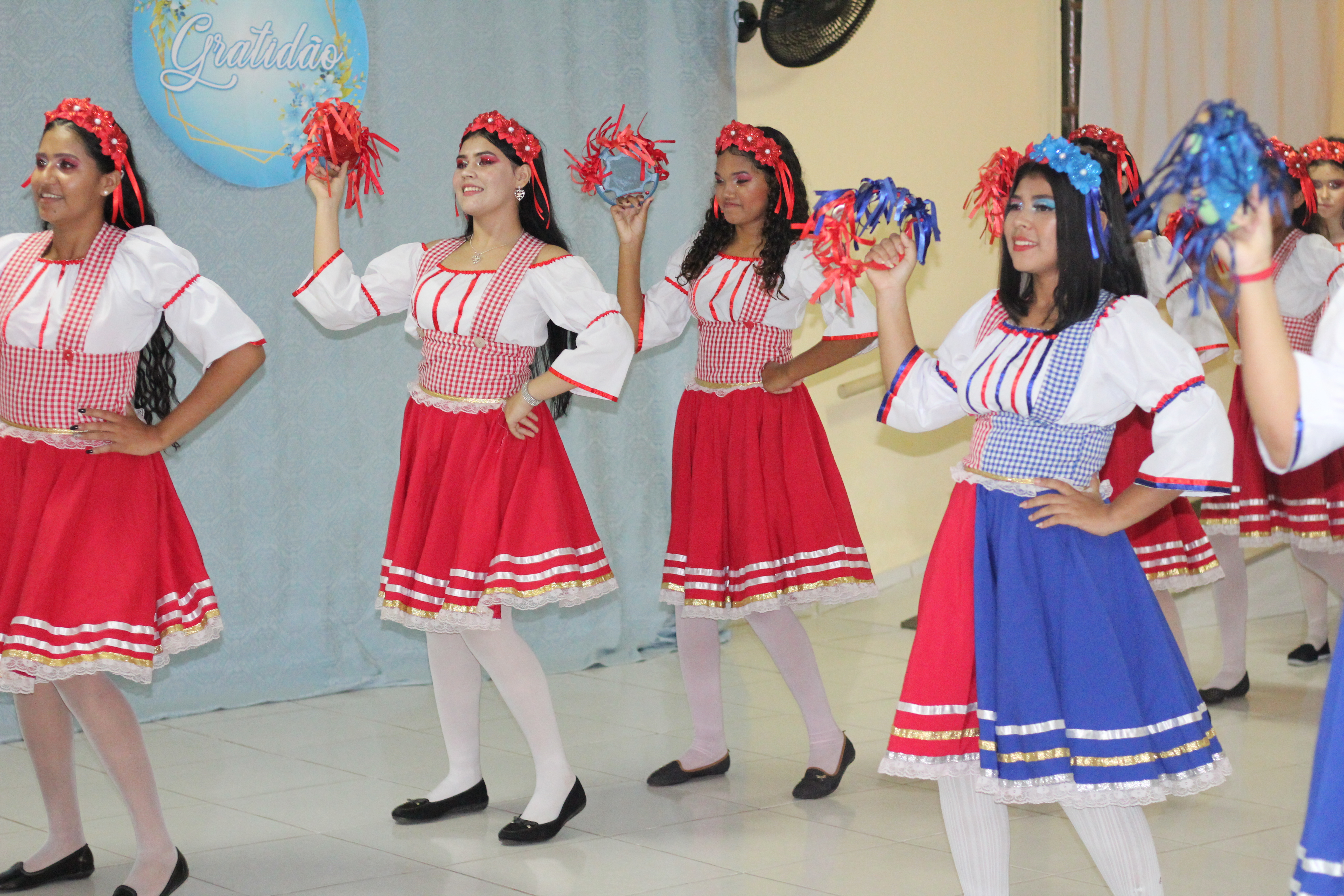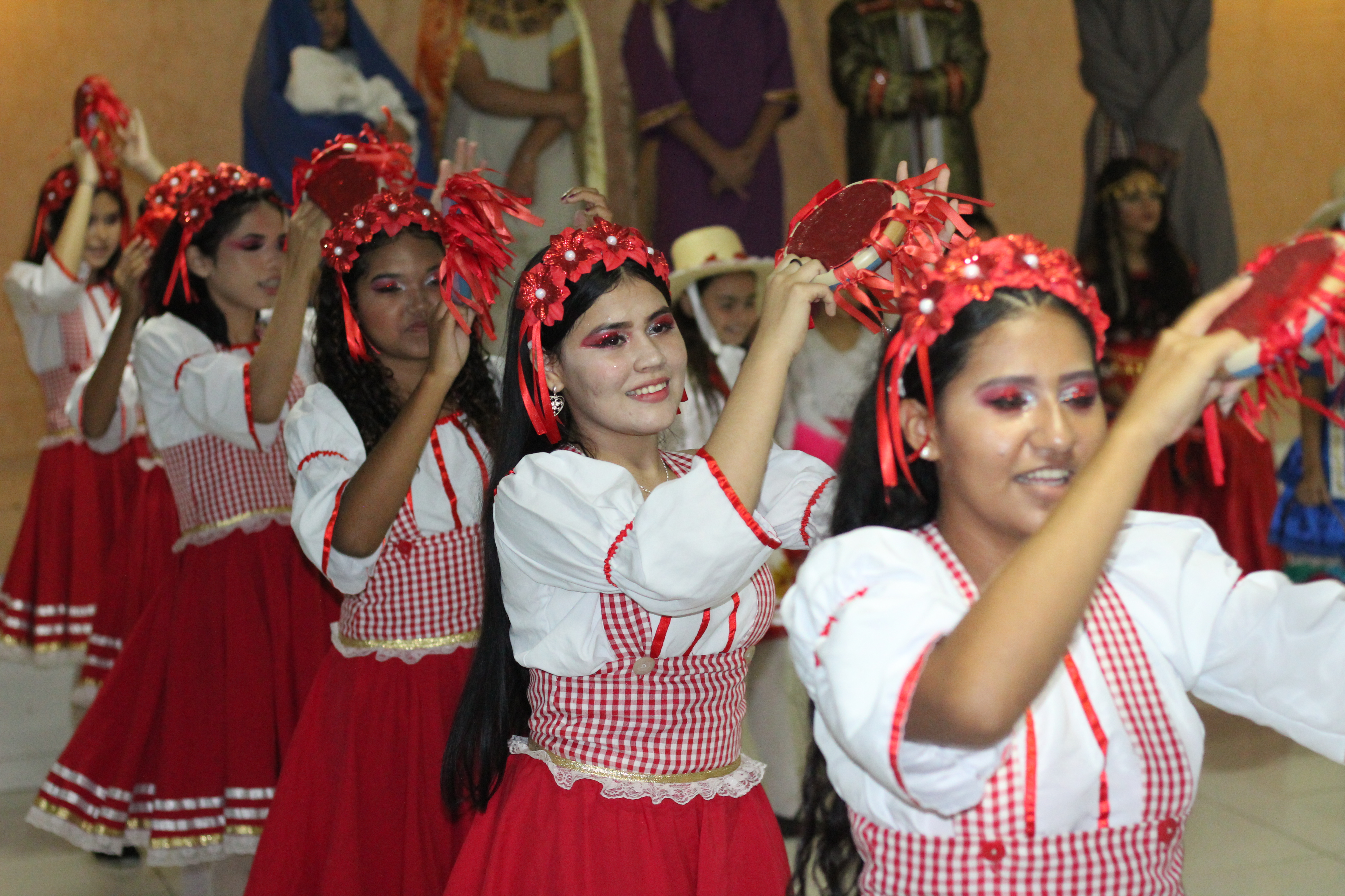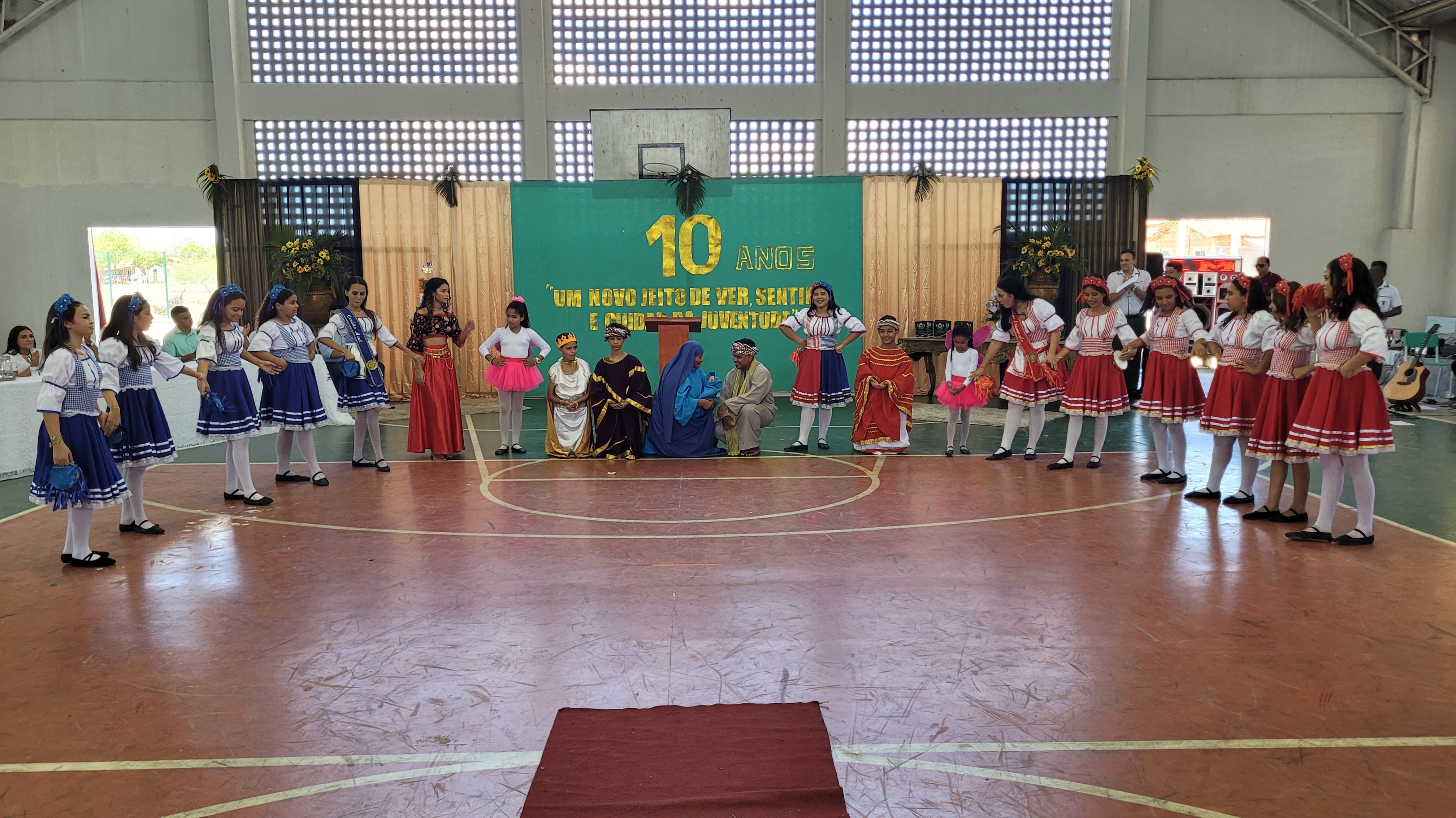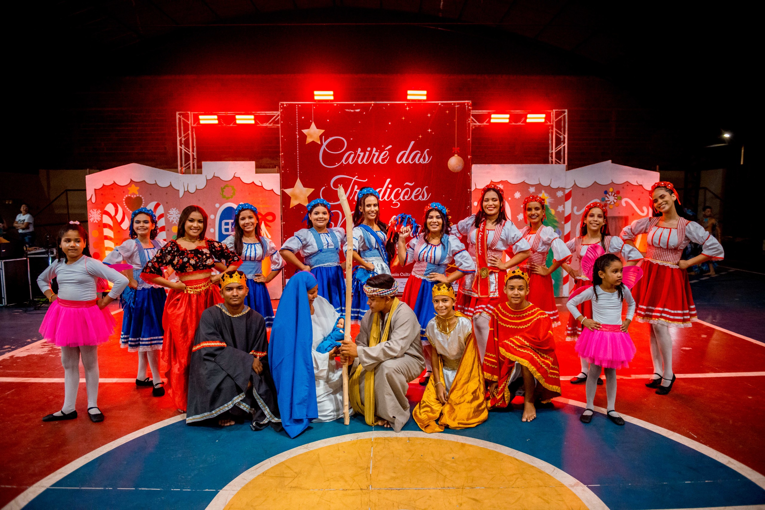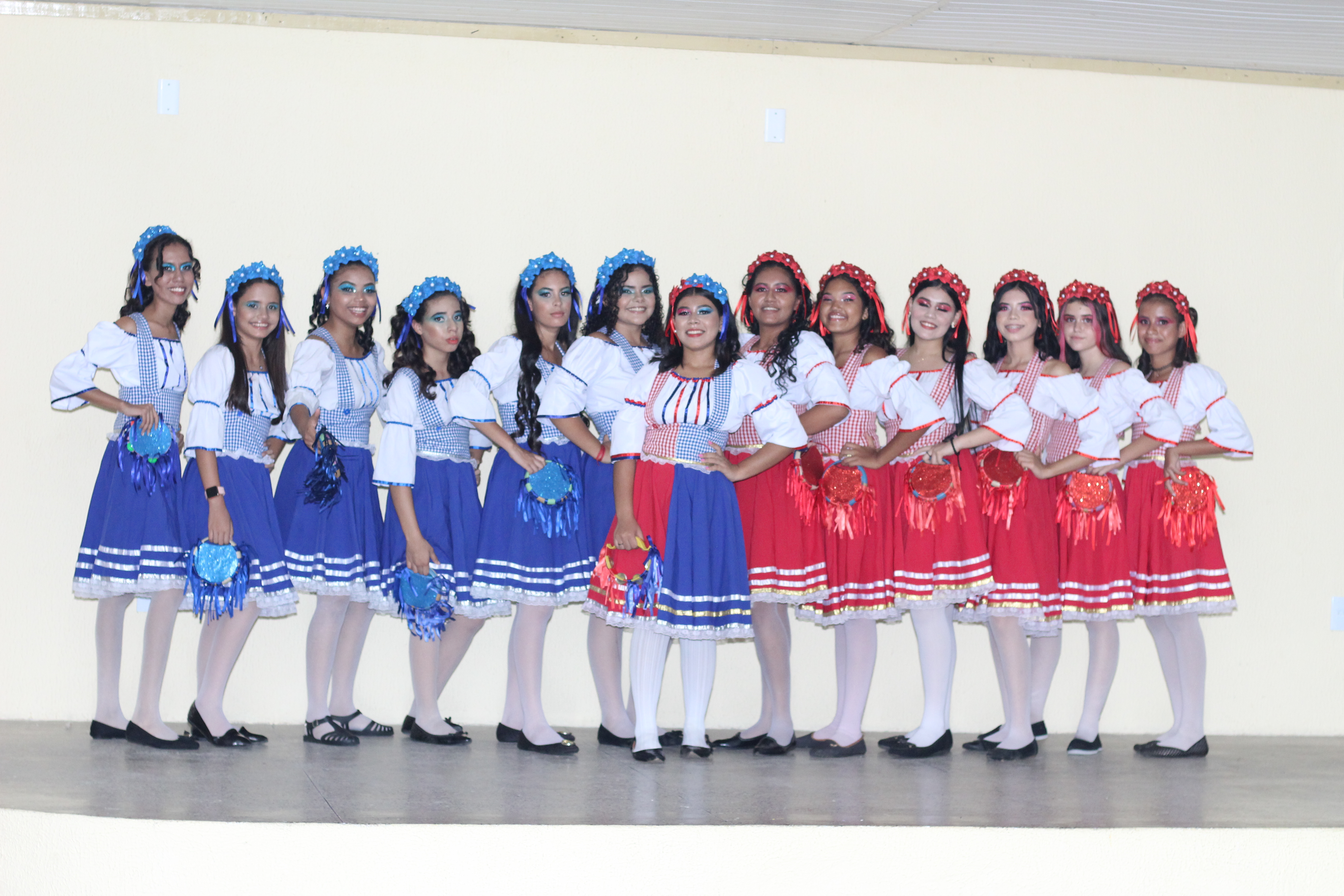 Aproximadamente 25 pessoas formam o nosso pastoril, entre dançarinas, atores e produção.