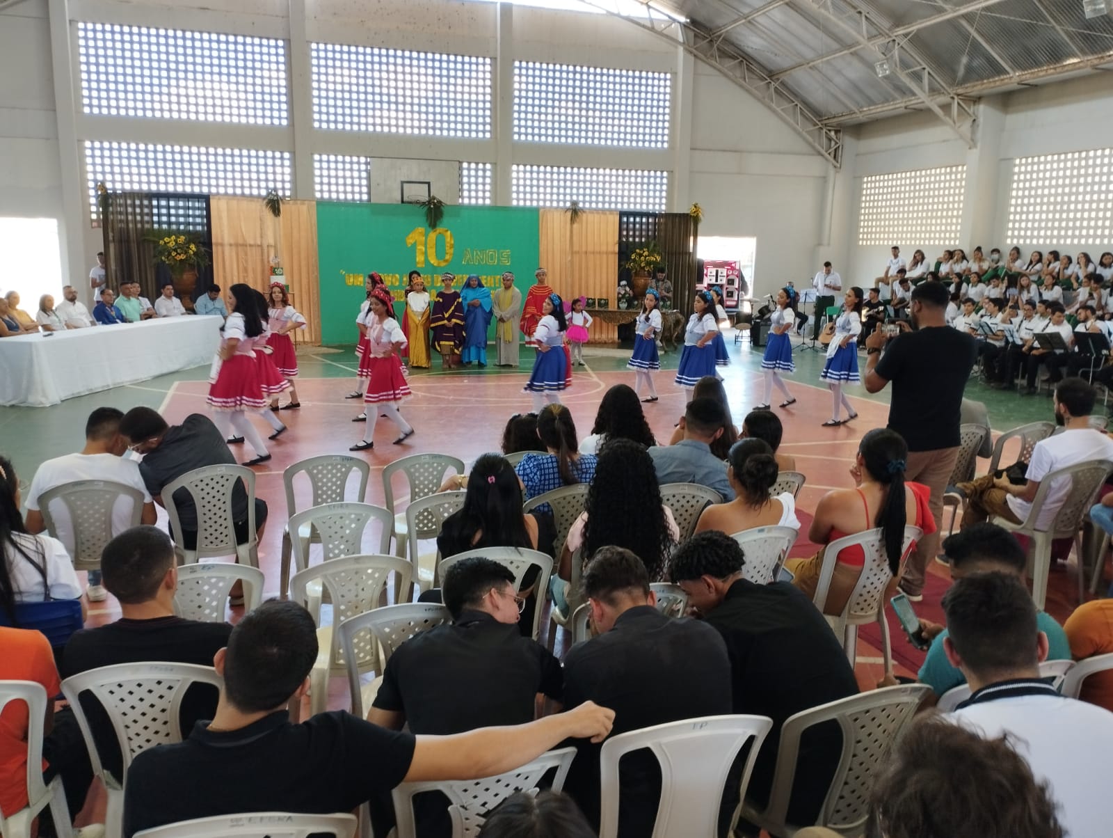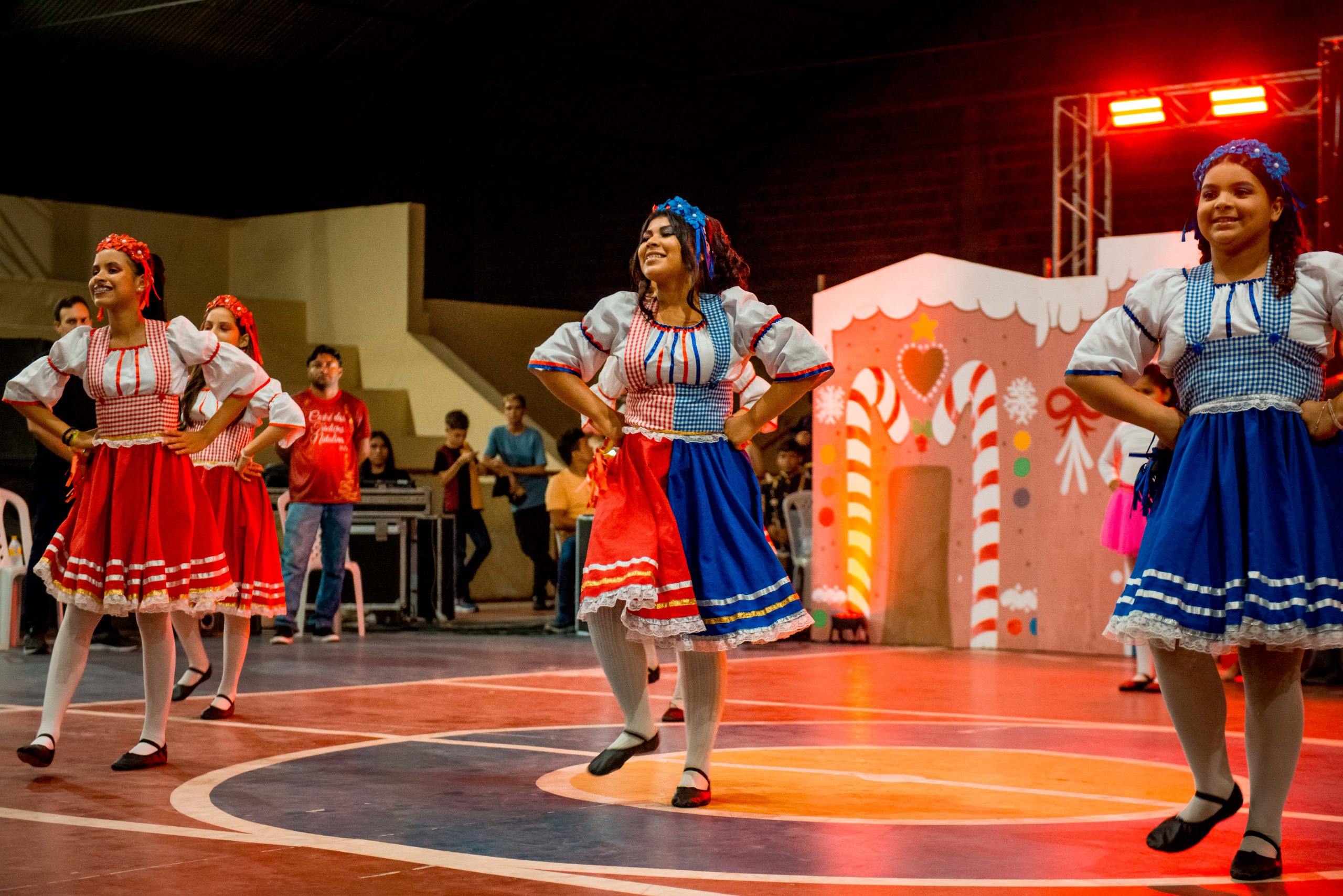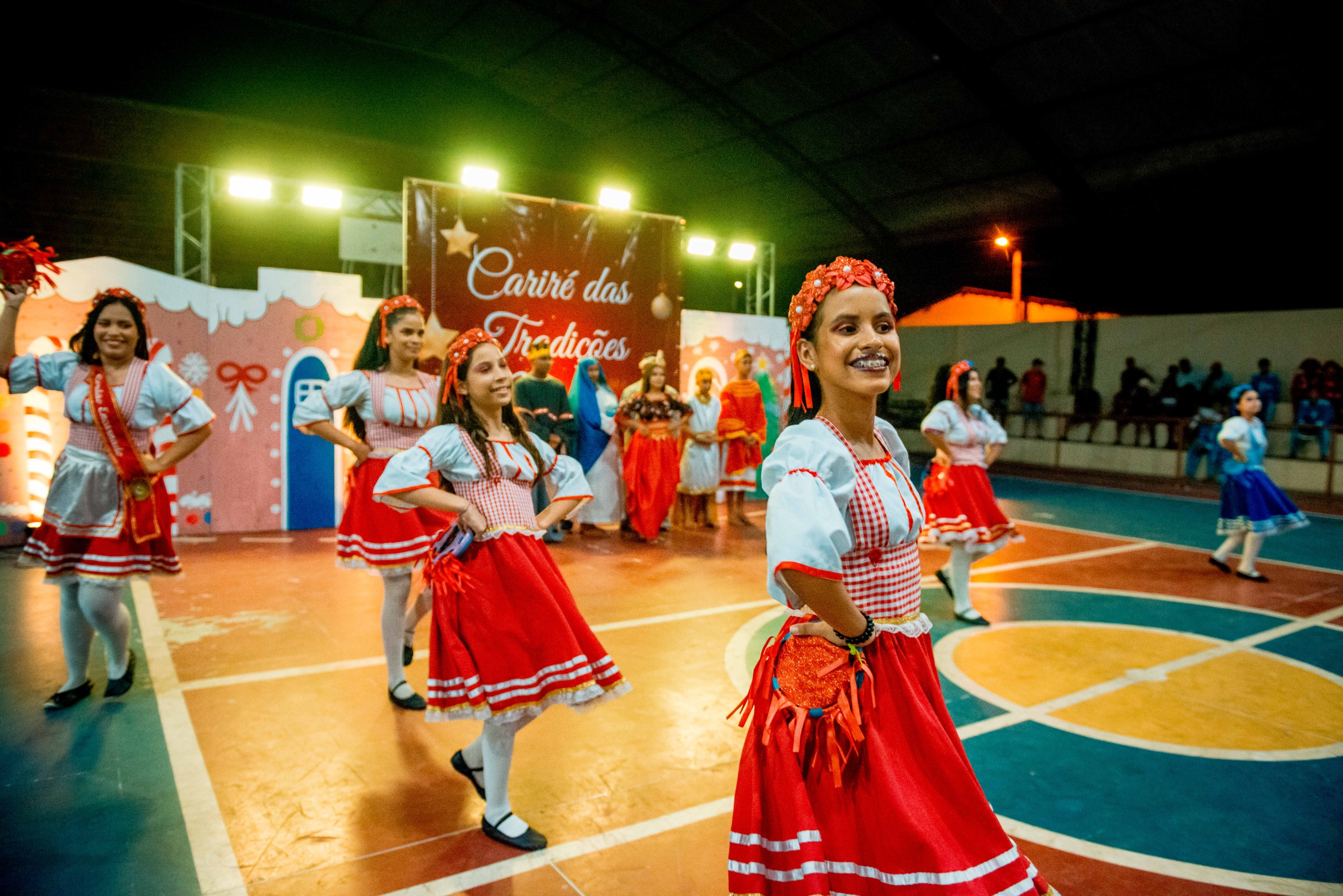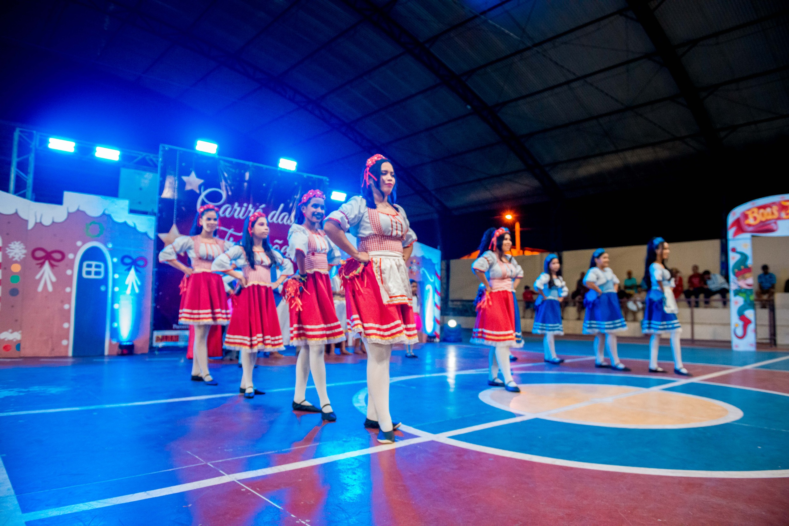 Aproximadamente 25 pessoas formam o nosso pastoril, entre dançarinas, atores e produção.